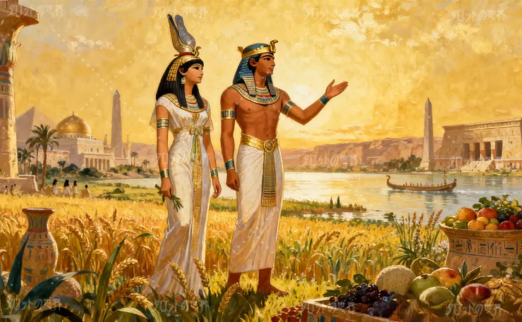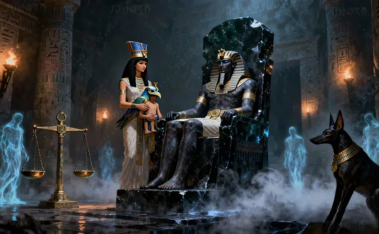 昔、エジプトの地に偉大な王オシリスがいました。彼は人々に農耕を教え、秩序をもたらし、豊かな国を築きました。妻イシスは賢く慈愛に満ち、二人は民から深く敬われていました。