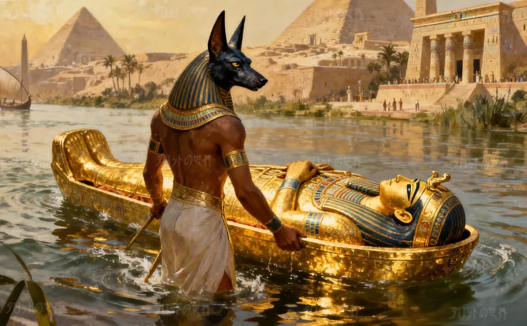 しかし、弟セトはその栄光を妬みました。ある日、セトは巧妙な罠を仕掛けます。彼は美しい棺を用意し、「この棺にぴったり収まる者に贈ろう」と言いました。オシリスが試しに入ると、セトは蓋を閉じて釘を打ち、棺をナイル川へ流してしまったのです。